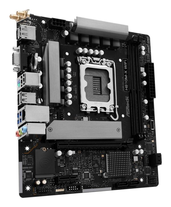 Intel H810 | micro ATX | Audio 7.1 channels | CPU Intel | Socket LGA 1851 (Socket V1) | Series Intel Core Ultra (Series 2) | Supported memory types DDR5-SDRAM | 2xNumber of memory slots | Memory slots type DIMM | Supported storage drive interfaces M.2,SATA III | 4xUSB 2.0 ports quantity | 2xUSB 3.2 Gen 1 (3.1 Gen 1) Type-A ports quantity | 1xEthernet LAN (RJ-45) ports | 1xVGA (D-Sub) ports quantity | 1xHDMI ports quantity | Wi-Fi Yes | Bluetooth Yes