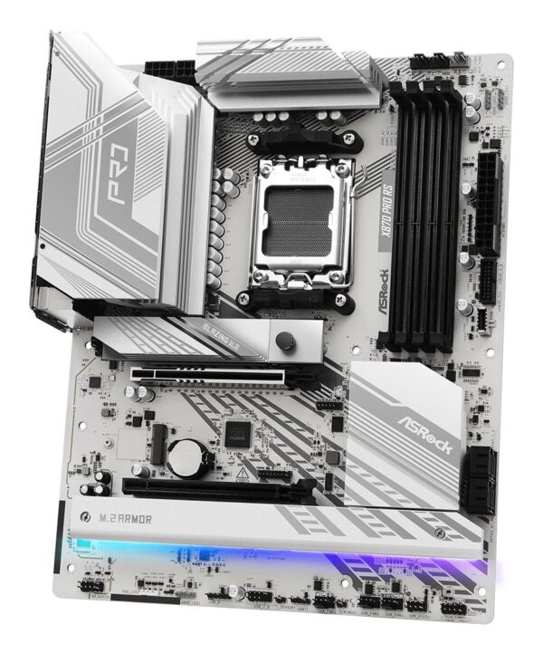 Asrock X870 PRO RS. Processor manufacturer: AMD, Processor socket: Socket AM5, Compatible processor series: AMD Ryzen 7000 Series, AMD Ryzen 8000 Series, AMD Ryzen 9000 Series. Supported memory types: DDR5-SDRAM, Maximum internal memory: 256 GB, Memory slots type: DIMM. Supported storage drive interfaces: PCI Express 3.0, PCI Express 4.0, PCI Express 5.0, SATA III, Supported storage drive types: HDD & SSD, RAID levels: 0, 1, 10. Parallel processing technology support: CrossFire, Maximum resolution: 7680 x 4320 pixels. Ethernet interface type: 2.5 Gigabit Ethernet, LAN controller: Dragon RTL8125BG