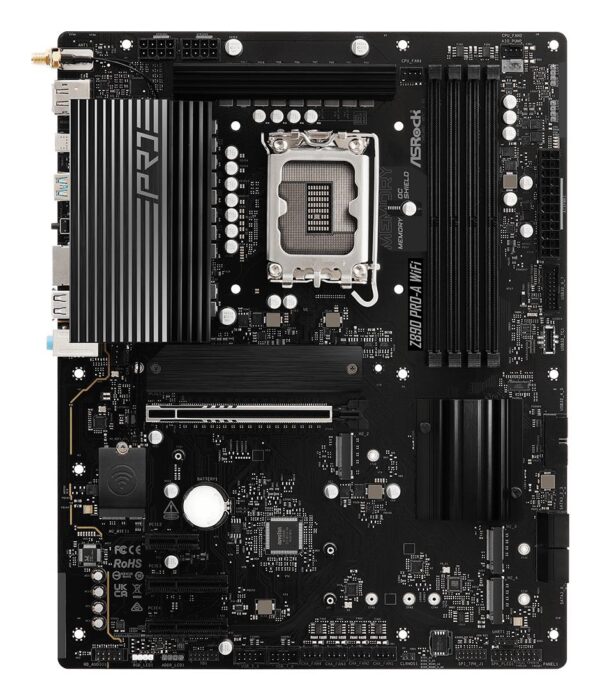 | Kokkuvõte | Asrock Z890 Pro-A WiFi. Processor manufacturer: Intel, Processor socket: LGA 1851 (Socket V1), Compatible processor series: Intel Core Ultra (Series 2). Supported memory types: DDR5-SDRAM, Maximum internal memory: 256 GB, Memory slots type: DIMM. Supported storage drive interfaces: M.2, SATA III, Supported storage drive types: HDD & SSD, RAID levels: 0, 1, 5, 10. Ethernet interface type: 2.5 Gigabit Ethernet, LAN controller: Dragon RTL8125BG, Top Wi-Fi standard: Wi-Fi 6E (802.11ax). Component for: PC, Motherboard form factor: ATX, Motherboard chipset family: Intel |