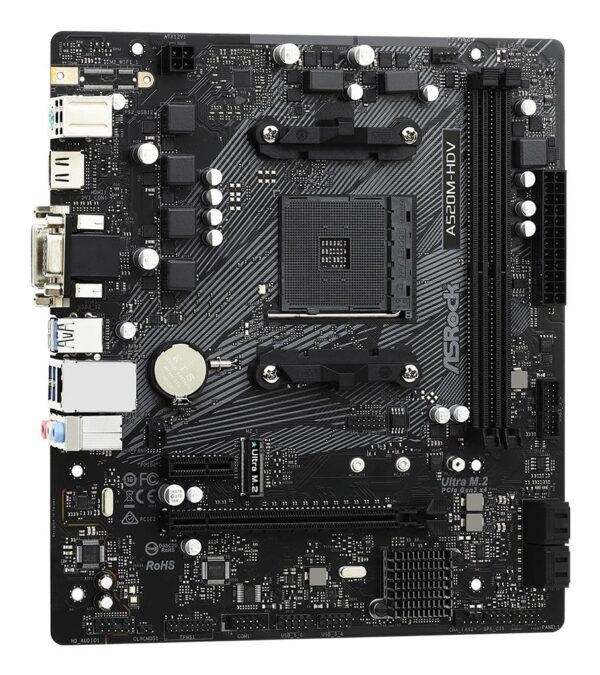 micro ATX | Audio 7.1 channels | CPU AMD | Socket Socket AM4 | Series AMD Ryzen 3000 Series | Supported memory types DDR4-SDRAM | 2xNumber of memory slots | Memory slots type DIMM | Supported storage drive interfaces M.2,SATA III | Graphics card Radeon Vega | 2xUSB 2.0 ports quantity | 4xUSB 3.2 Gen 1 (3.1 Gen 1) Type-A ports quantity | 1xEthernet LAN (RJ-45) ports | 1xVGA (D-Sub) ports quantity | 1xHDMI ports quantity