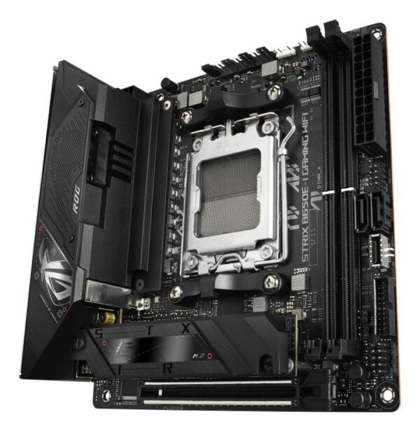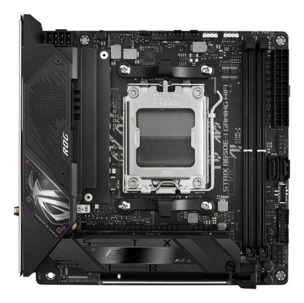 | Kokkuvõte | ASUS ROG STRIX B650E-I GAMING WIFI. Processor manufacturer: AMD, Processor socket: Socket AM5, Compatible processor series: AMD Ryzen™ 7. Supported memory types: DDR5-SDRAM, Maximum internal memory: 64 GB, Memory slots type: DIMM. Supported storage drive interfaces: M.2, SATA III, Supported storage drive types: HDD & SSD, RAID levels: 0, 1. Ethernet interface type: 2.5 Gigabit Ethernet, Top Wi-Fi standard: Wi-Fi 6E (802.11ax), Wi-Fi standards: 802.11a, 802.11b, 802.11g, Wi-Fi 4 (802.11n), Wi-Fi 5 (802.11ac), Wi-Fi 6 (802.11ax), Wi-Fi 6E…. Component for: PC, Motherboard form factor: mini ITX, Motherboard chipset family: AMD |
