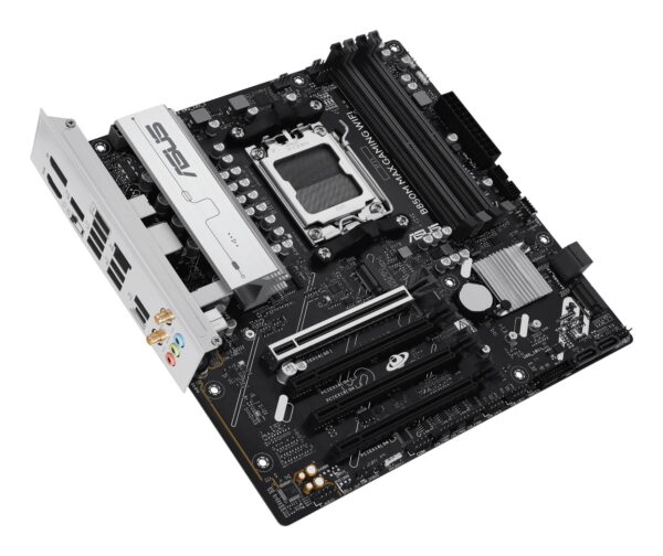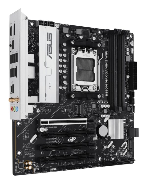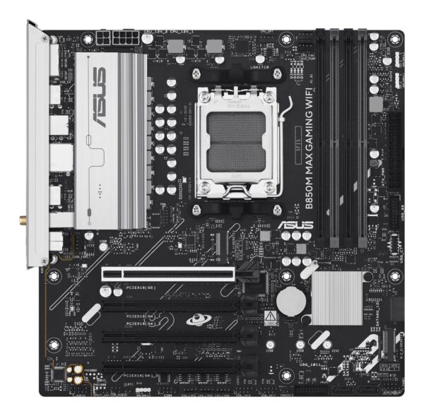 AMD B850 | micro ATX | Audio 7.1 channels | CPU AMD | Socket Socket AM5 | Series AMD Ryzen 7000 Series/AMD Ryzen 8000 Series/AMD Ryzen 9000 Series | Supported memory types DDR5-SDRAM | 4xNumber of memory slots | Memory slots type DIMM | Supported storage drive interfaces M.2,SATA III | 5xUSB 2.0 ports quantity | 2xUSB 3.2 Gen 1 (3.1 Gen 1) Type-A ports quantity | 1xUSB 3.2 Gen 2 (3.1 Gen 2) Type-A ports quantity | 1xUSB 3.2 Gen 2 (3.1 Gen 2) Type-C ports quantity | 1xEthernet LAN (RJ-45) ports | 1xHDMI ports quantity | Wi-Fi Yes | Bluetooth Yes | Antenna included Yes | Weight 859 g