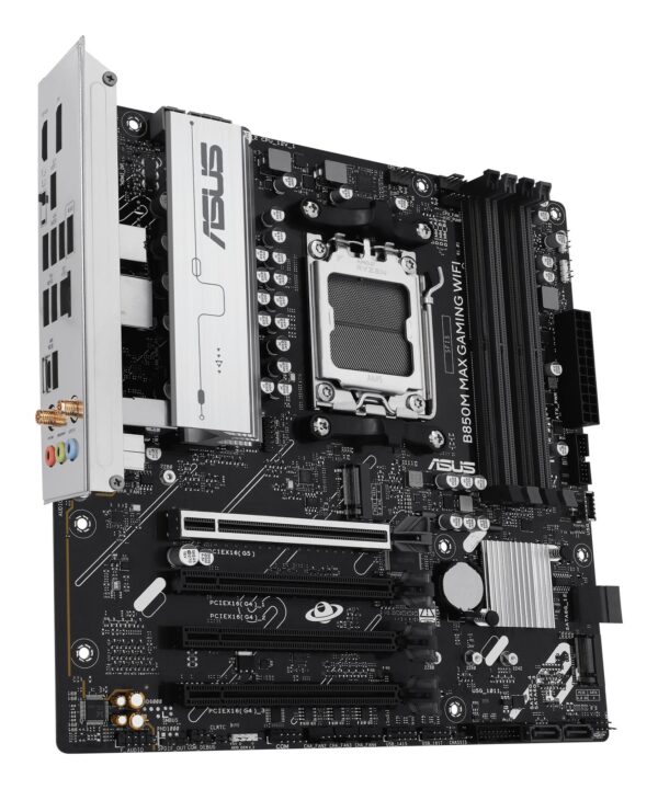 | Kokkuvõte | ASUS B850M MAX GAMING WIFI. Processor manufacturer: AMD, Processor socket: Socket AM5, Compatible processor series: AMD Ryzen 7000 Series, AMD Ryzen 8000 Series, AMD Ryzen 9000 Series. Supported memory types: DDR5-SDRAM, Maximum internal memory: 256 GB, Memory slots type: DIMM. Supported storage drive interfaces: M.2, SATA III, Supported storage drive types: HDD & SSD, RAID levels: 0, 1, 5, 10. Ethernet interface type: Gigabit Ethernet, Top Wi-Fi standard: Wi-Fi 6 (802.11ax), Wi-Fi standards: Wi-Fi 6 (802.11ax). Component for: PC, Motherboard form factor: micro ATX, Motherboard chipset family: AMD |