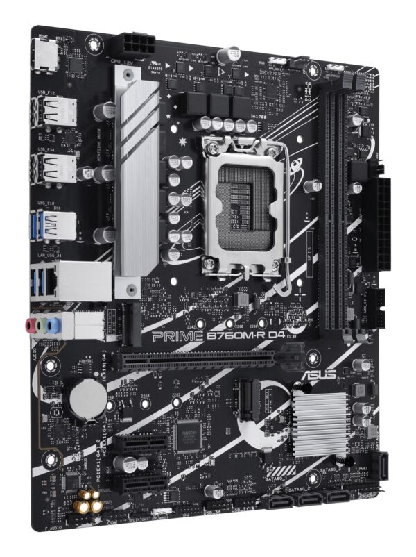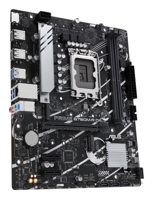 | Kokkuvõte | ASUS PRIME B760M-R D4. Processor manufacturer: Intel, Processor socket: LGA 1700, Compatible processor series: Intel Core i9 14th Gen, Intel Core i3 12th Gen, Intel Core i3 13th Gen, Intel Core i5 12th Gen,…. Supported memory types: DDR4-SDRAM, Maximum internal memory: 64 GB, Memory slots type: DIMM. Supported storage drive interfaces: M.2, SATA III, Supported storage drive types: HDD & SSD, RAID levels: 0, 1, 5, 10. Ethernet interface type: 2.5 Gigabit Ethernet. Component for: PC, Motherboard form factor: micro ATX, Motherboard chipset family: Intel |
