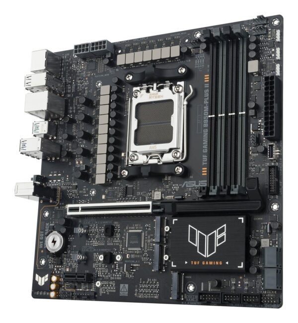 | Kokkuvõte | ASUS TUF GAMING B850M-PLUS II. Processor manufacturer: AMD, Processor socket: Socket AM5, Compatible processor series: AMD Ryzen 7000 Series, AMD Ryzen 8000 Series, AMD Ryzen 9000 Series. Supported memory types: DDR5-SDRAM, Maximum internal memory: 256 GB, Memory slots type: DIMM. Supported storage drive interfaces: M.2, SATA III, Supported storage drive types: HDD & SSD, RAID levels: 0, 1, 5, 10. Ethernet interface type: 2.5 Gigabit Ethernet. Component for: PC, Motherboard form factor: micro ATX, Motherboard chipset family: AMD |