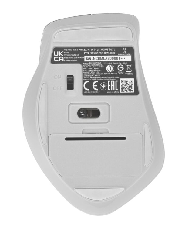 | Kokkuvõte | ASUS WT425. Form factor: Right-hand. Movement detection technology: Optical, Device interface: RF Wireless, Movement resolution: 1600 DPI, Scroll type: Wheel. Power source: Batteries. Product colour: Silver |