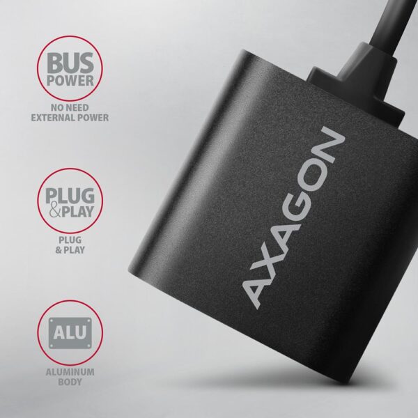 | Kokkuvõte | Axagon ADA-12 USB sound card with 15 cm cable and metal body.. Audio output channels: 2.0 channels, Audio quality: 16 bit, Line-out Signal-to-Noise Ratio (SNR): 93 dB. Host interface: USB, Headphone connectivity: 3.5 mm. Cable length: 0.15 m, Product colour: Black, Certification: CE, RoHS. Windows operating systems supported: Windows 10, Windows 11, Windows 7, Windows 8. Weight: 16 g, Width: 29 mm, Depth: 29 mm |
