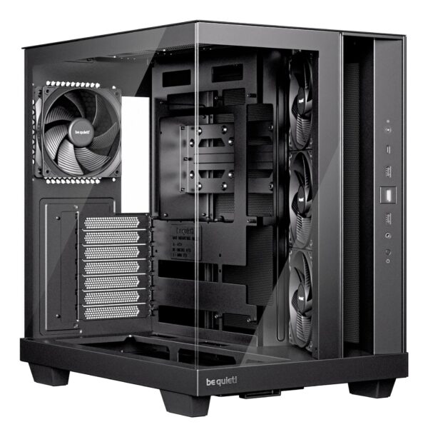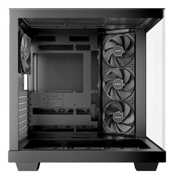| Bullet Points | <ul><li>Angled slide-out fan frame on the side routes air direct ly to the GPU</li><li>Fans can be installed in the lowered fan bay to line up perfectly with the case floor</li><li>3 Pure Wings 3 120mm PWM intake fans with reversed fan blades in the side</li><li>1 Pure Wings 3 120mm PWM fan as a rear exhaust</li><li>Spacious design for radiators up to 360mm, an ATX motherboard, 2 HDDs and 2 SSDs at the same time</li><li>2 possible PSU positions enable backside connector motherboards</li><li>Filters i n the side and the bottom to prevent the system from collecting dust</li><li>Zero RGB for an unobtrusive and elegant appearance in any room</li></ul> |