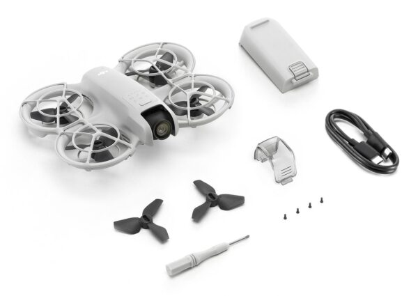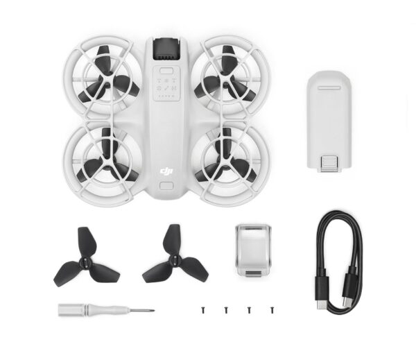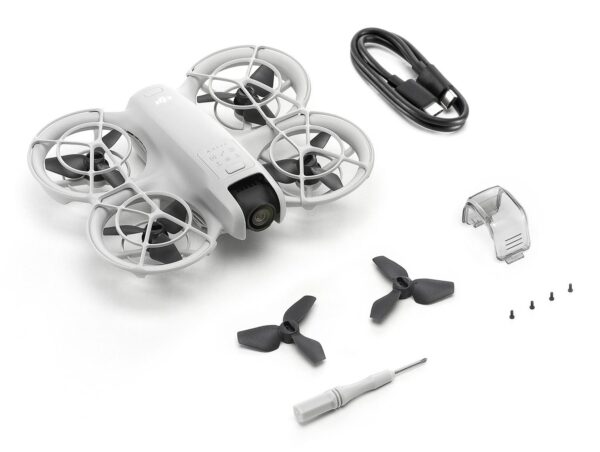 DJI Neo | Quadcopter | Black/White | Drone class C1 | Number of rotors 4 rotors | Maximum speed 16 m/s | Maximum flight altitude 2000 m | Maximum operating distance 7000 m | Maximum flight time 18 min | Megapixel (approx.) 12 MP | Internal memory 22 GB | Weight 263.5 g | Batteries included Yes