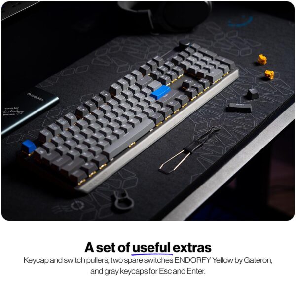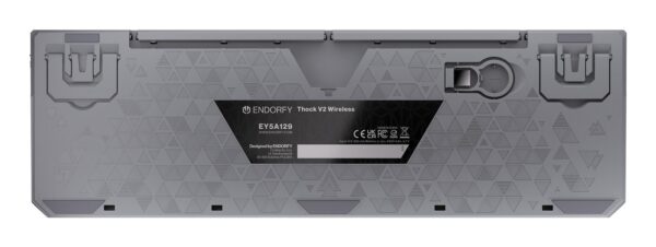 | Kokkuvõte | ENDORFY Thock V2. Keyboard form factor: Full-size (100%). Keyboard style: Straight. Connectivity technology: Wired & Wireless, Device interface: USB + RF Wireless + Bluetooth, Keyboard key switch: Mechanical, Keyboard layout: QWERTY, Keyboard number of keys: 104. Backlight type: RGB LED. Cable length: 1.8 m. Recommended usage: Gaming. Product colour: Grey |