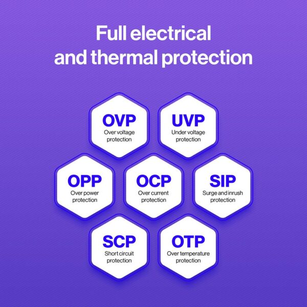 | Toitekaitse funktsioonid | Over current/Over power/Over voltage/Overheating/Short circuit/Surge & inrush protection (SIP)/Under voltage |