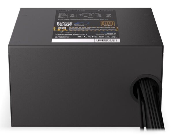 | Kokkuvõte | ENDORFY Vero L5 Bronze 600W. Total power: 600 W, AC input voltage: 200 – 240 V, AC input frequency: 50 Hz. Motherboard power connector: 24-pin ATX, Motherboard power cable length: 57 cm, SATA power cable length: 500 mm. Purpose: PC, Power supply unit (PSU) form factor: ATX, 80 PLUS certification: 80 PLUS Bronze. Product colour: Black, Fan diameter: 12 cm, Number of fans: 1 fan(s). Cables included: AC |