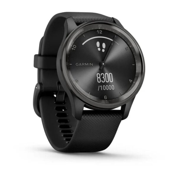 | Kokkuvõte | Garmin vivomove Trend. Display technology: LCD, Display resolution: 254 x 346 pixels, Touchscreen. GPS (satellite). Weight: 28.3 g. Waterproof up to: 50 m, Band material: Silicone, Band colour: Black |