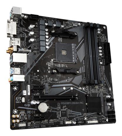 AMD A520 | micro ATX | Audio 7.1 channels | CPU AMD | Socket Socket AM4 | Series AMD Ryzen 3000 Series/AMD Ryzen Threadripper 3000 Series/AMD Ryzen Threadripper PRO 3000 WX-Series | Supported memory types DDR4-SDRAM | 4xNumber of memory slots | Memory slots type DIMM | Supported storage drive interfaces M.2,SATA III | 5120 x 2880 pixels | Discrete graphics support Yes | 2xUSB 2.0 ports quantity | 4xUSB 3.2 Gen 1 (3.1 Gen 1) Type-A ports quantity | 1xEthernet LAN (RJ-45) ports | 1xHDMI ports quantity | 1xDVI-D ports quantity | Wi-Fi Yes | Bluetooth Yes | Antenna included Yes | Weight 720 g