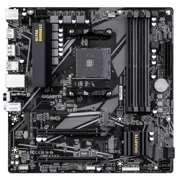 | Kokkuvõte | GIGABYTE B550M DS3H AC R2 Motherboard – AMD Ryzen 5000 CPUs, 5+3 Phases VRM, up to 4733MHz DDR4 (O.C.), 1xPCIe 4.0 + 1xPCIe 3.0 M.2, Wi-Fi 5, 1GbE LAN, USB 3.2 Gen 1. Processor manufacturer: AMD, Processor socket: Socket AM4, Compatible processor series: AMD Ryzen 3000 Series, AMD Ryzen 4000 Series, AMD Ryzen 5000 Series. Supported memory types: DDR4-SDRAM, Maximum internal memory: 128 GB, Memory slots type: DIMM. Supported storage drive interfaces: M.2, PCI Express 3.0, PCI Express 4.0, SATA III, Supported storage drive types: HDD & SSD, RAID levels: 0, 1, 10. Maximum resolution: 5120 x 2880 pixels. Ethernet interface type: Gigabit Ethernet, LAN controller: Realtek RTL8111H, Top Wi-Fi standard: Wi-Fi 5 (802.11ac) |