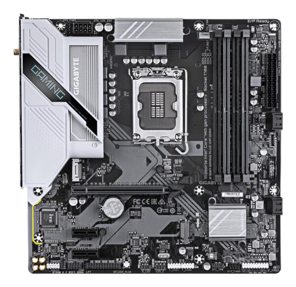 | Kokkuvõte | GIGABYTE B760M GAMING PLUS WIFI DDR4 Motherboard – Supports 14th Gen. Intel Core CPUs, 4+1+1 phases VRM, up to 5333MHz DDR4 (OC), 2xPCIe 4.0 M.2, Wi-Fi 6, 1 GbE LAN, USB 3.2 Gen 1. Processor manufacturer: Intel, Processor socket: LGA 1700, Compatible processor series: Intel® Celeron®, Intel Core i3 12th Gen, Intel Core i3 13th Gen, Intel Core i3 14th Gen, Intel…. Supported memory types: DDR4-SDRAM, Maximum internal memory: 128 GB, Memory slots type: DIMM. Supported storage drive interfaces: M.2, SATA III, Supported storage drive types: HDD & SSD, RAID levels: 0, 1, 5, 10. Maximum resolution: 4096 x 2304 pixels. Ethernet interface type: Gigabit Ethernet, LAN controller: Realtek RTL8111H, Top Wi-Fi standard: Wi-Fi 6 (802.11ax) |
