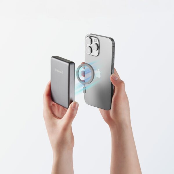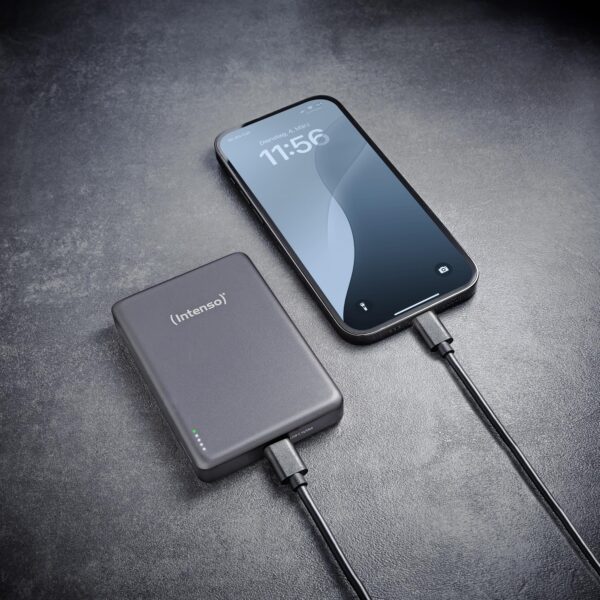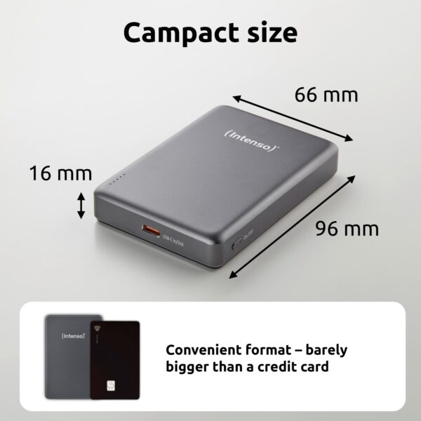 | Kokkuvõte | Intenso MW10000 Magnetic Power Bank 10000 mAh – MagSafe Compatible, 15W Wireless Charging, 20W USB-C PD, For iPhone & Android – Tested in Germany – Grey. Battery capacity: 10000 mAh, Battery technology: Lithium Polymer (LiPo), Fast charging technology: Power Delivery, Programmable Power Supply (PPS), Battery voltage: 3.85 V. USB Type-C ports quantity: 1. Wireless charging. Product colour: Grey |