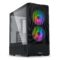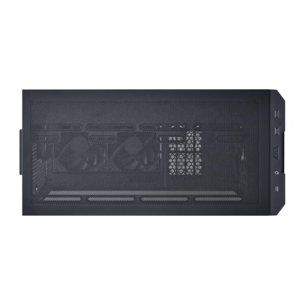 | Cooling & Ventilation System | Front: 2 x 140mm ARGB fan (450~1900 RPM / DC 12V, 0.4A / LED 5V, 0.7A / 109.3 CMF / 3.3 mm-H2O / 34.86 dB-A); Above PSU Shroud : 2 x 120mm PWM fan (500~1950 RPM / DC 12V, 0.28A / 71.1 CMF / 1.99 mm-H2O / 30.81 dB-A) |