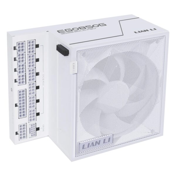 | Kokkuvõte | Lian Li EG0850G. Total power: 850 W, AC input voltage: 100 – 240 V, AC input frequency: 50/60 Hz. Motherboard power connector: 20+4 pin ATX, Motherboard power cable length: 50 cm, SATA power cable length: 300,400 mm. Purpose: PC, Power supply unit (PSU) form factor: ATX, 80 PLUS certification: 80 PLUS Gold. Product colour: White, Cooling type: Active, Fan diameter: 12 cm. Cables included: CPU, PCIe, Peripheral (Molex), SATA |
