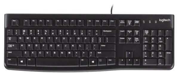 | Kokkuvõte | Logitech K120 Corded Keyboard. Keyboard form factor: Full-size (100%). Keyboard style: Straight. Connectivity technology: Wired, Device interface: USB, Keyboard layout: QWERTY. Cable length: 1.5 m. Recommended usage: Office. Product colour: Black |