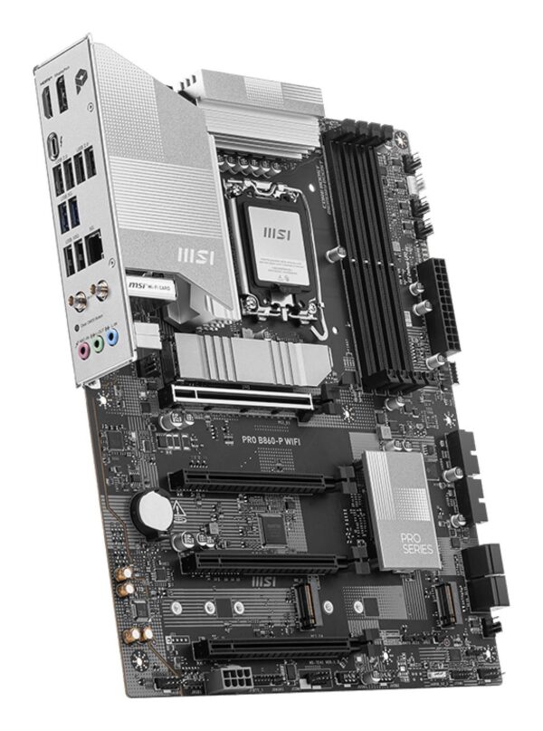 | Kokkuvõte | MSI PRO B860-P WIFI. Processor manufacturer: Intel, Processor socket: LGA 1851 (Socket V1), Compatible processor series: Intel Core Ultra (Series 2). Supported memory types: DDR5-SDRAM, Maximum internal memory: 256 GB, Memory slots type: DIMM. Supported storage drive interfaces: M.2, Micro SATA III, Supported storage drive types: HDD & SSD, RAID levels: 0, 1, 5, 10. Ethernet interface type: 5 Gigabit Ethernet, Top Wi-Fi standard: Wi-Fi 7 (802.11be), Wi-Fi standards: 802.11a, 802.11b, 802.11g, Wi-Fi 4 (802.11n), Wi-Fi 5 (802.11ac), Wi-Fi 6 (802.11ax), Wi-Fi 6E…. Component for: PC, Motherboard form factor: ATX, Motherboard chipset family: AMD |
