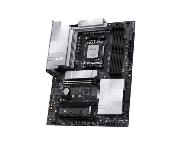 MSI PRO X870E-P WIFI. Processor manufacturer: AMD, Processor socket: Socket AM5, Compatible processor series: AMD Ryzen 7000 Series, AMD Ryzen 8000 Series, AMD Ryzen 9000 Series. Supported memory types: DDR5-SDRAM, Maximum internal memory: 256 GB, Memory slots type: DIMM. Supported storage drive interfaces: M.2, SATA III, Supported storage drive types: HDD & SSD, RAID levels: 0, 1. Ethernet interface type: 5 Gigabit Ethernet, Top Wi-Fi standard: Wi-Fi 7 (802.11be), Wi-Fi standards: 802.11a, 802.11b, Wi-Fi 4 (802.11n), Wi-Fi 5 (802.11ac), Wi-Fi 6 (802.11ax), Wi-Fi 6E (802.11ax),…. Component for: PC, Motherboard form factor: ATX, Motherboard chipset family: AMD