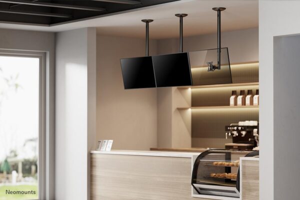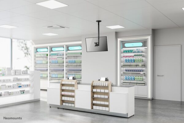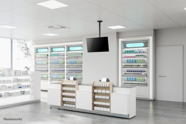1xNumber of displays supported | Maximum weight capacity (per display) 20 kg | Maximum weight capacity 20 kg | Minimum screen size 10 ” | Maximum screen size 30 ” | Minimum VESA mount 50 x 50 mm | Maximum VESA mount 100 x 100 mm | Mounting type Ceiling | Height adjustment Yes | Tilt adjustment Yes | Tilt angle range 0 – 40 ° | Swivelling Yes | Colour Black | Housing material Steel | Weight 1.54 kg