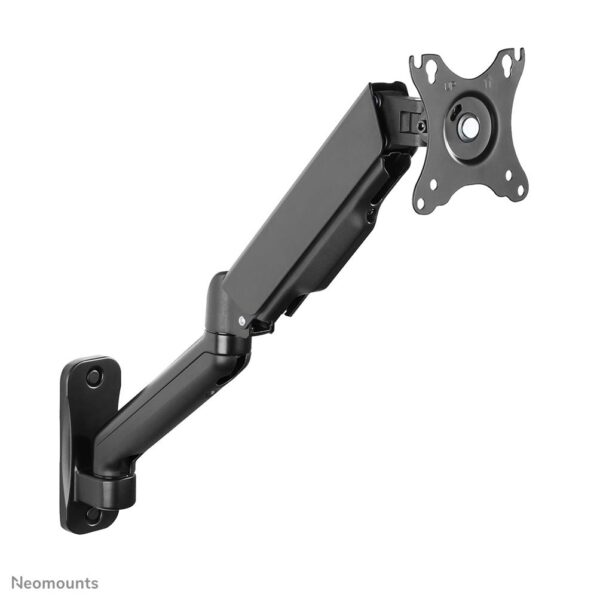| Kokkuvõte | Neomounts WL70-450BL11 Monitor/TV mount wall 17-32" – gas spring – full motion. Maximum weight capacity: 9 kg, Minimum screen size: 43.2 cm (17"), Maximum screen size: 81.3 cm (32"), Minimum VESA mount: 75 x 75 mm, Maximum VESA mount: 100 x 100 mm. Height adjustment range: 0 – 250 mm, Tilt angle range: -45 – 90°, Swivel angle range: 0 – 180°, Angle of rotation: 360°, Distance to the wall (min): 9 cm, Distance to the wall (max): 54 cm. Product colour: Black |