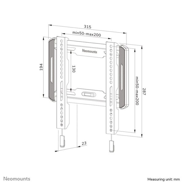 | Kokkuvõte | Neomounts WL30-550BL12 TV mount wall 24-65" – ultra-flat – easy install. Maximum weight capacity: 40 kg, Minimum screen size: 61 cm (24"), Maximum screen size: 165.1 cm (65"), Minimum VESA mount: 50 x 50 mm, Maximum VESA mount: 200 x 200 mm. Distance to the wall (max): 2.3 cm. Product colour: Black |