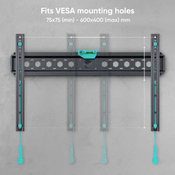 1xNumber of displays supported | Maximum weight capacity (per display) 68.2 kg | Maximum weight capacity 68.2 kg | Minimum screen size 43 ” | Maximum screen size 85 ” | Minimum VESA mount 75 x 75 mm | Maximum VESA mount 600 x 400 mm | Mounting type Wall | Housing material Steel | Colour Black