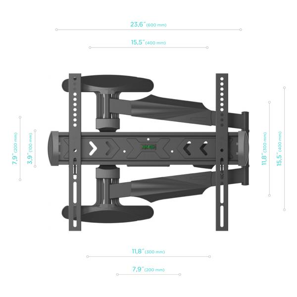 1xNumber of displays supported | Maximum weight capacity (per display) 35 kg | Maximum weight capacity 35 kg | Minimum screen size 40 ” | Maximum screen size 75 ” | Minimum VESA mount 100 x 100 mm | Maximum VESA mount 400 x 400 mm | Mounting type Wall | Tilt adjustment Yes | Tilt angle range -5 – 8 ° | Swivelling Yes | Distance to the wall (min) 65 mm | Housing material Steel | Colour Black