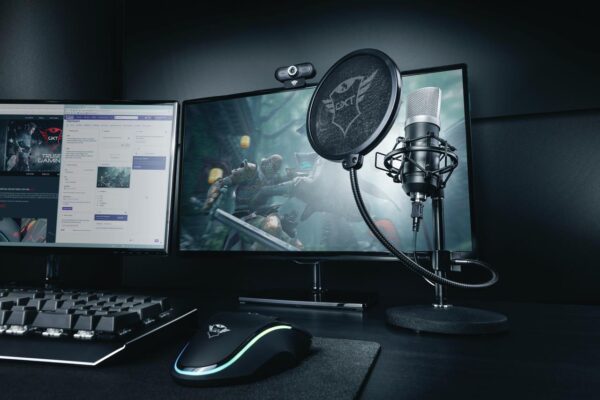 | Kokkuvõte | Trust 21753. Type: Studio microphone, Microphone frequency: 20 – 20000 Hz, Microphone direction type: Cardioid. Connectivity technology: Wired, Device interface: USB. Product colour: Black, Cable length: 1.8 m, Country of origin: China. Power source: USB. Diameter: 4.7 cm, Microphone weight: 300 g |