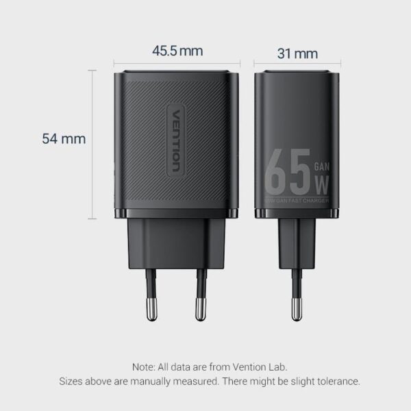 | Kokkuvõte | Vention FERB0-EU. Charger type: Indoor, Power source type: AC, Charger compatibility: Headphones, Laptop, Smartphone, Smartwatch, Tablet. Input voltage: 100 – 240 V. USB Type-C ports quantity: 2, Fast charging, Power protection features: Over current, Over voltage, Overheating, Short circuit. Product colour: Black |